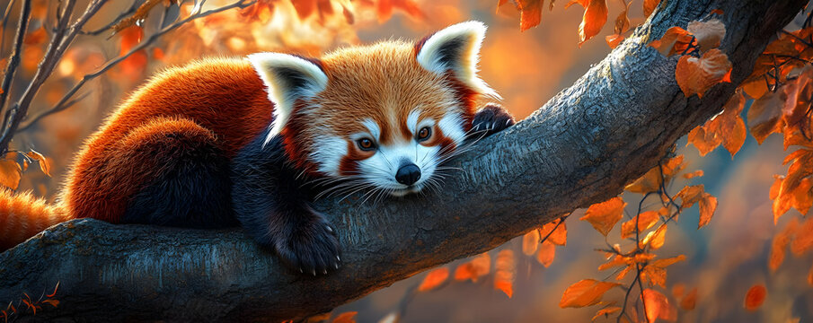 Eurasian red squirrel In the natural habitat in the autumn forest The forest is full of warm colors.