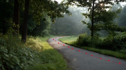 Abstract wavy path with numerous red location markers
