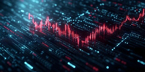 Dramatic red line graph on dark grid background
