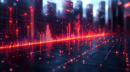 Futuristic data visualization with bar chart over digital grid