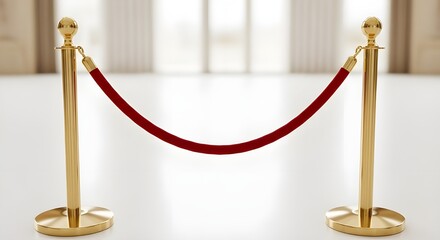 Luxury red velvet rope barrier with shiny gold stanchion pole on vibrant red background, exclusive VIP access concept, elegant event security decor, premium entrance divider for gala or ceremony