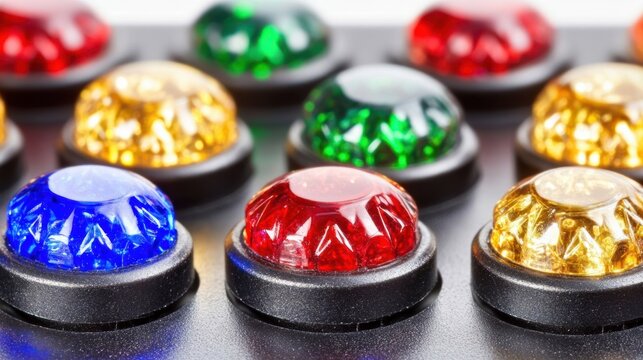Close Up of Shiny Red Dome Push Button on a White Background Surface