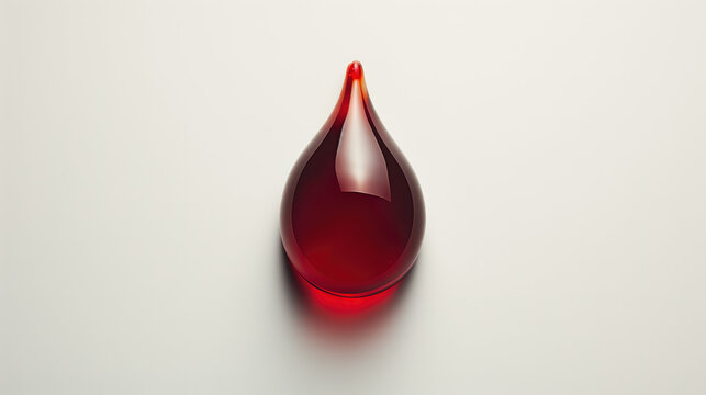 A red drop of blood is shown on a white background