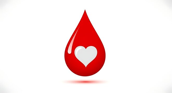 Donate blood and save lives with this powerful symbol of compassion, showcasing a vibrant red drop cradling a pure white heart, perfect for health awareness campaigns and medical promotions.
