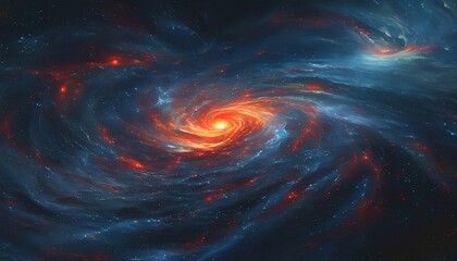 red dwarf star system, showing a fiery red star surrounded by a cloud of asteroids