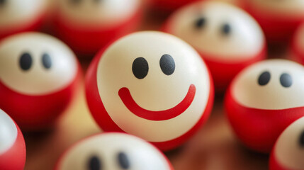 Smiling Spheres: A Group of Joyful Red and White Faces
