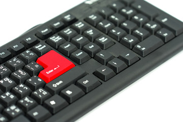 Black keyboard with red enter bottom isolated on white