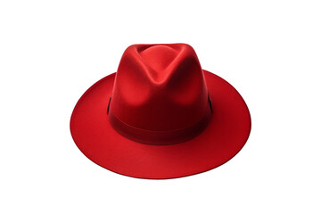 Red fedora hat isolated on transparent background