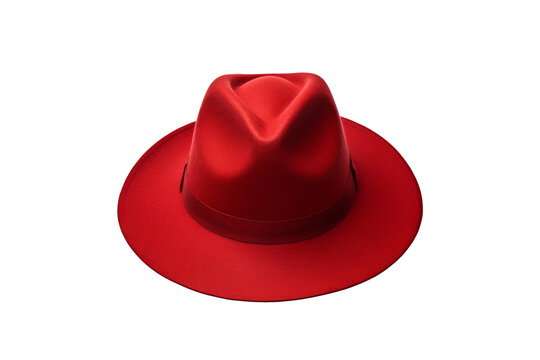 Red fedora hat with black band isolated on transparent background