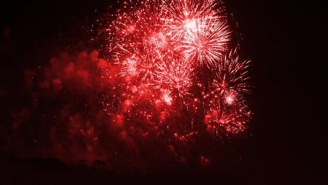 Red Firework celebrate anniversary happy new year 2024, 4th of july holiday festival. red firework in night time celebrate national holiday. Countdown to new year 2024 festival party time event