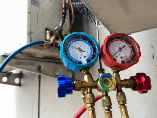 Meter or pressure gauge, refrigerant Technicians to check and maintain air conditioners at home, industry or offices.