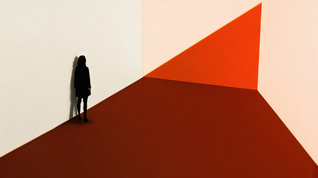 Abstract red geometry creative shape background. Modern and trendy minimal paper composition.