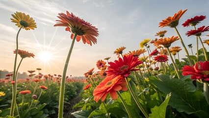Vibrant Red Gerbera Daisies in Rustic Pot