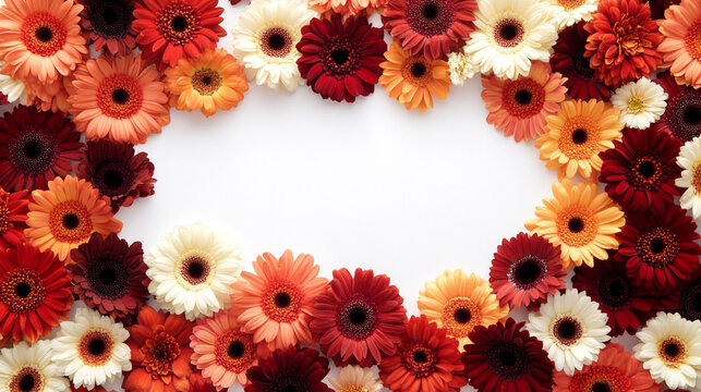 Orange  Red   White Gerbera Daisy Flower Frame Border