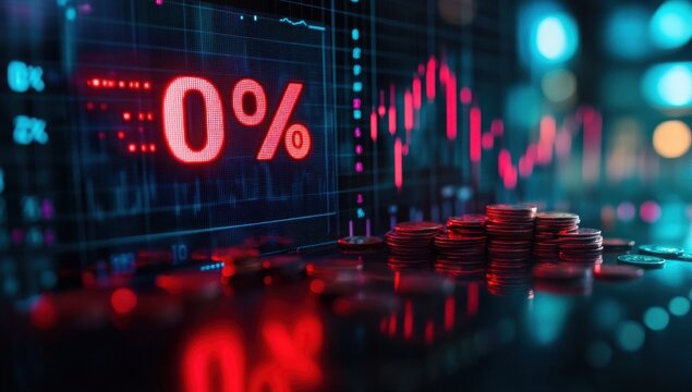 Digital financial concept with red graphics and coins symbolizing growth and economy