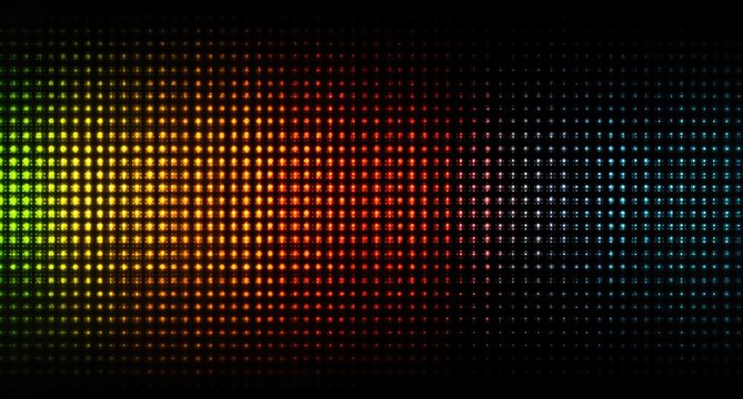 An abstract, colorful visual of vibrant vertical lines with dots over a reflective surface