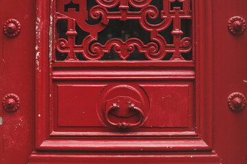 Shiny red ceramic mug with abstract network overlay on pastel mint background