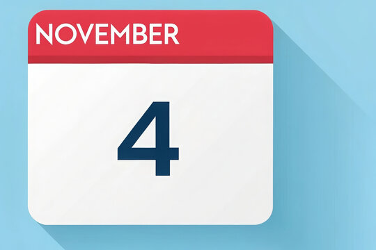 Flat Vector Calendar Icon Illustration Representing November 4th with Red Header and Shadow on Blue Background