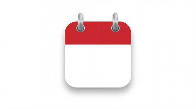Blank calendar page with red header and silver rings on white background
