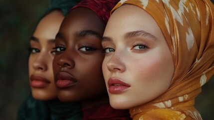red background with striking portrait of an elegant woman showcasing vibrant colors and African beauty in red headwrap