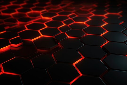 Red hexagons on a black surface create an abstract, modern, and visually striking pattern