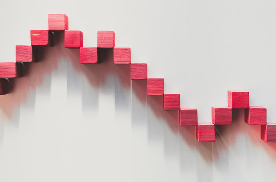 red wooden blocks arranged in a height pattern in the form of a diagram or bar chart.