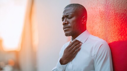 A person experiencing acute or chronic body pain, painful area with a glowing red hotspot, conceptual image for pain, injury, or inflammation. Pain relief and treatment, Generic health problem