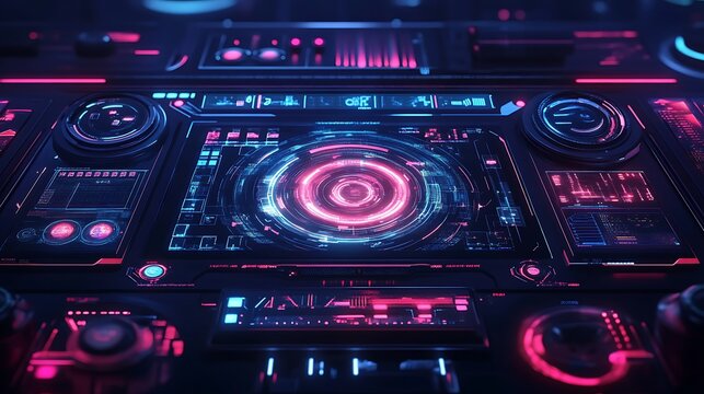 Futuristic cyber hud displaying circular data interface with keyboard overlay and numbers