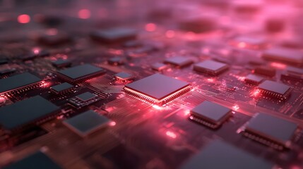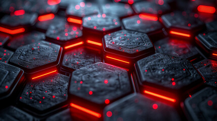 Glowing red panels in apocalyptic abandoned industrial corridor