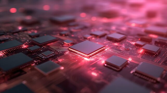 Futuristic neon city plaza with red lanterns and skyscrapers at night, red alert concept