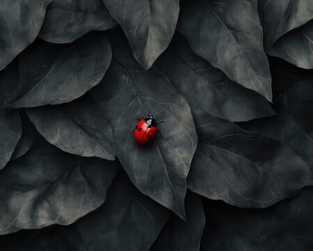 Vibrant Red Ladybug Contrast on Gray Leaf Background - Nature Macro Photography