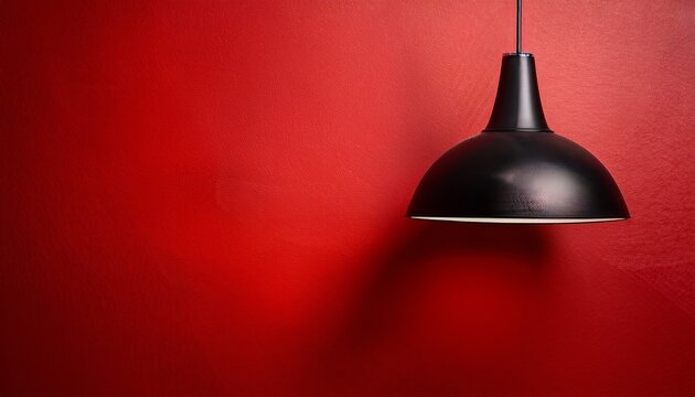 Interior design with red lamp in an empty room with wooden parquet floor.