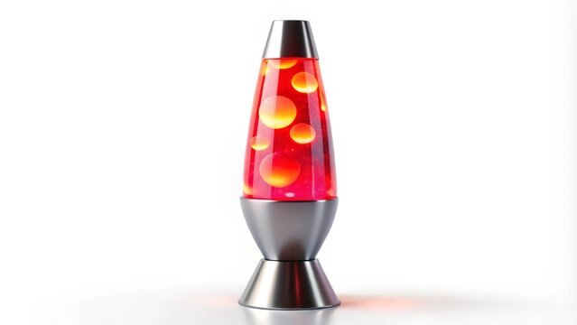 Red lava lamp with glass container and silver base isolated on a transparent background