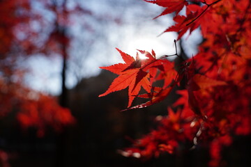 Bright red maple leaves close-up