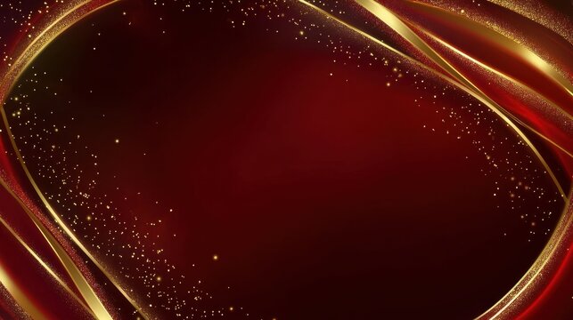 Luxury red color background with golden line elements and curve light effect decoration and bokeh.