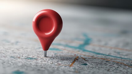 A vibrant red map pointer stands out on a detailed map, symbolizing location, navigation, and discovery. Guiding the way to new experiences and destinations on the map.