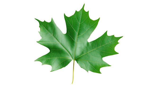 Green maple leaf isolated solid white background, detailed, PNG dicut style