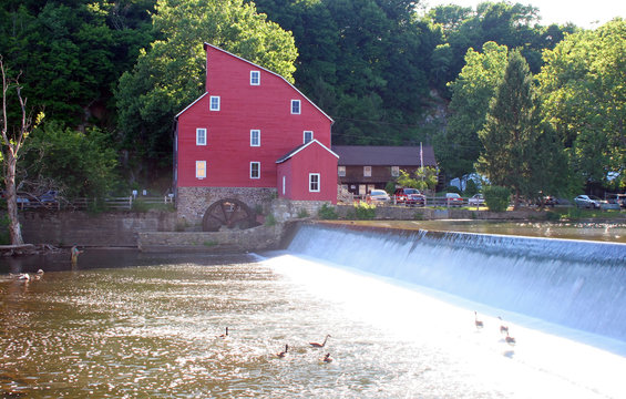 The Red Mill is a 4-story grist mill and historic site located along the south branch of the Raritan River in Clinton, New Jersey.