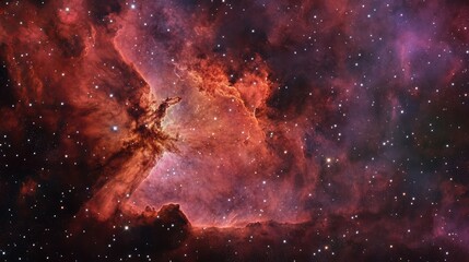 ai generated illustration of a vibrant red nebula adorned with stars against a cosmic backdrop