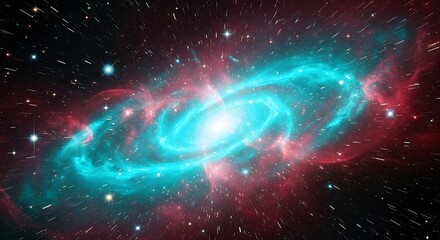 Swirling Teal and Red Nebula with Streaking Stars in Deep Space