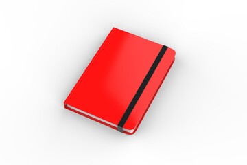 Red notebook with elastic band, round corner notepad mockup template on isolated white background, 3d illustration