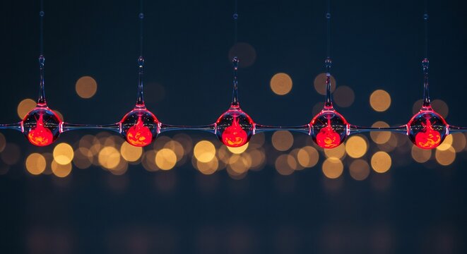 Luminous Row of Five Red Christmas Baubles Against a Golden Bokeh Night.