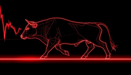 Red neon bird icon on rock with black background