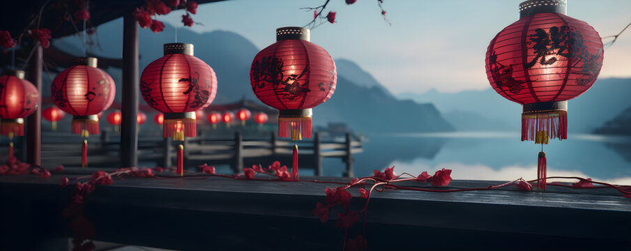 Chinese new year lanterns with festive red background