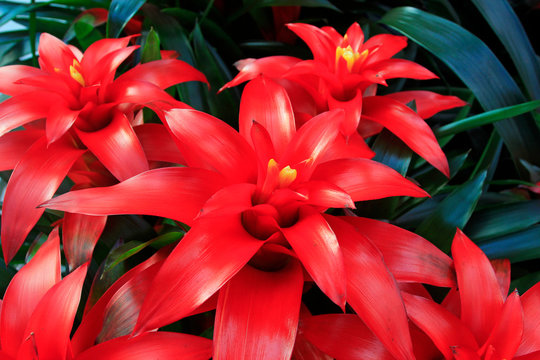 Red Pineapple Flower - red bromeliad, (Billbergia Pyramidalis)