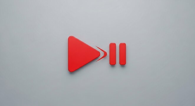 Red Play and Pause Icon on Gray Background.