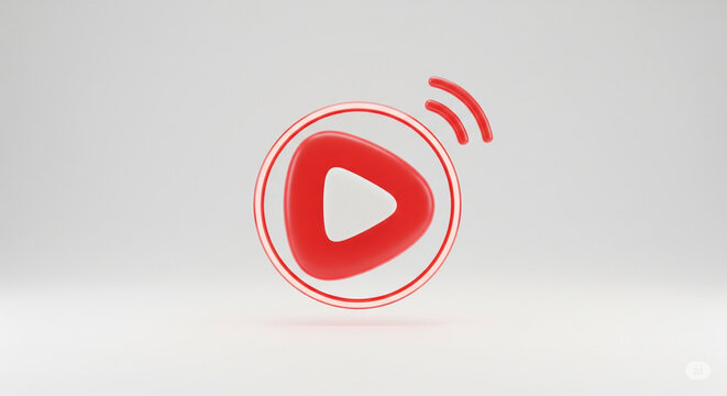 A glossy, round, red play button with a white arrow stands out against a plain white background.