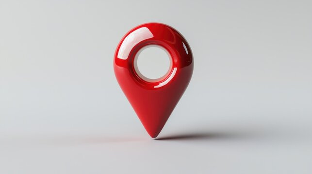 3D rendered red location pin pointer casting a soft shadow on light surface