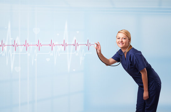 Healthcare technology: nurse using pulse oximeter with digital interface