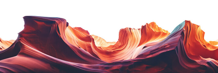 Abstract red rock formations panoramic view isolated on transparent background.